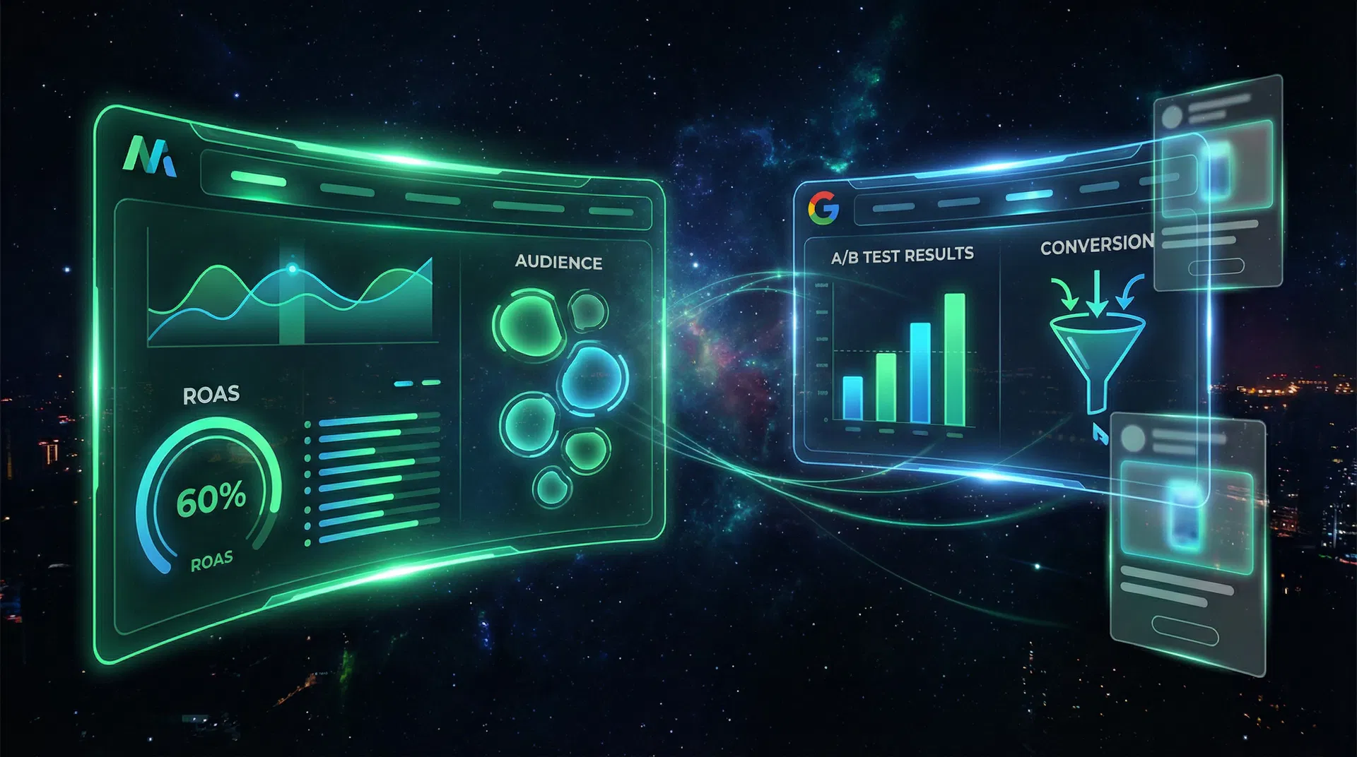 Our campaigns are enhanced by AI algorithms that optimize bids, audiences, and creative in real-time for maximum efficiency.